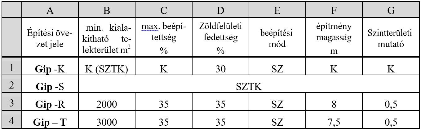 c) 4. zajvédelmi kategória gazdasági terület: Gip, Gksz övezetekbe sorolt területek.