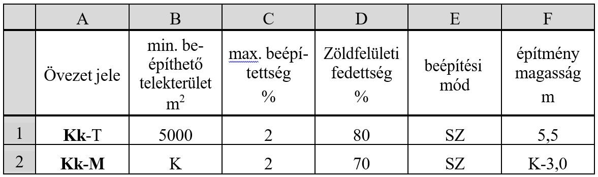 (4) A Kk-T területen a teljes közműellátás, és burkolt út biztosítandó.