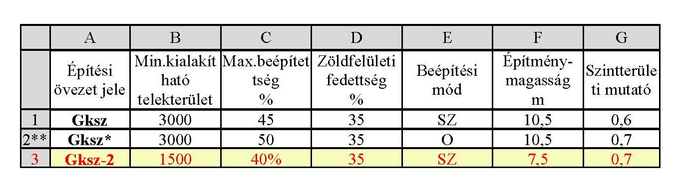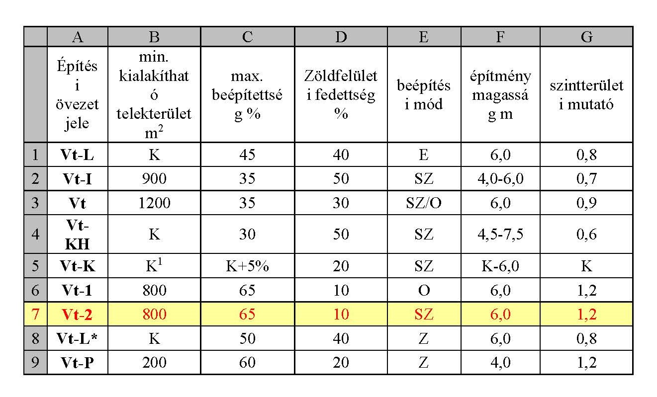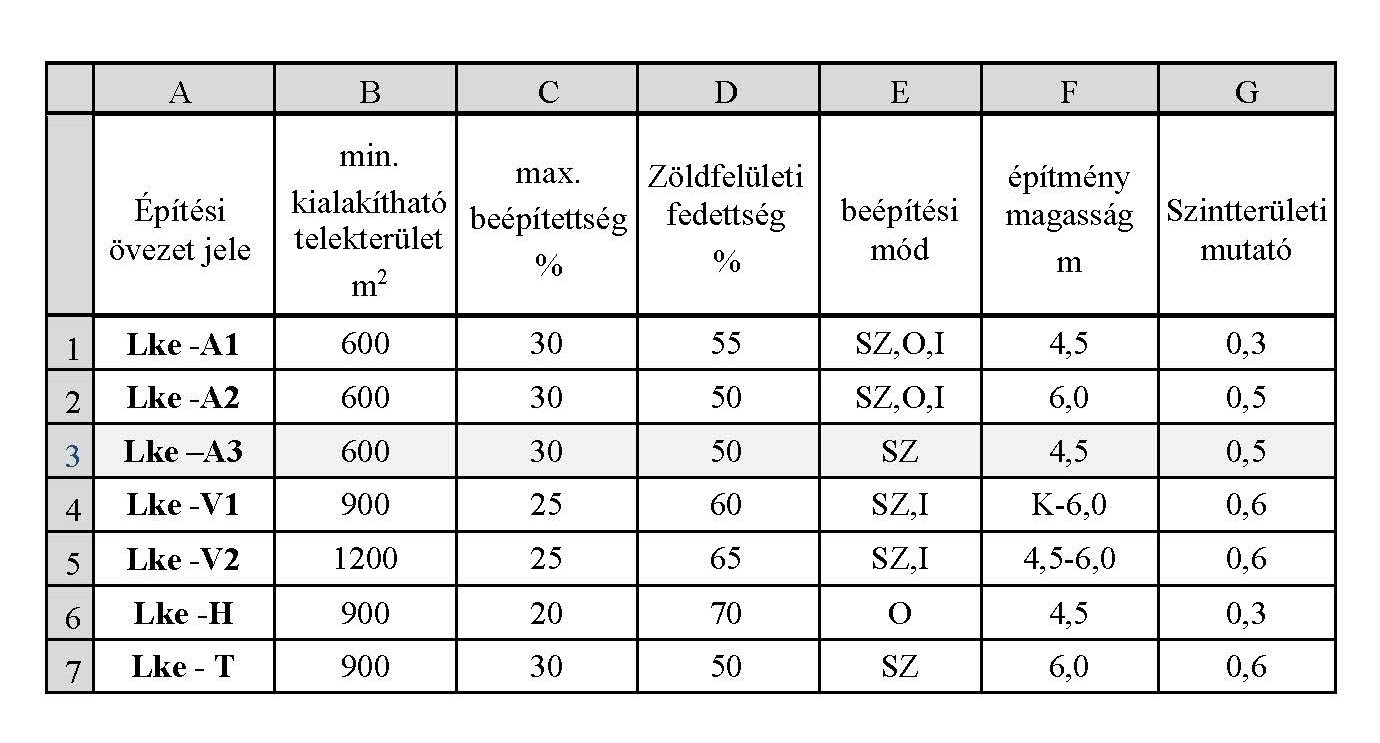 a) a különböző lakóövezetekben az egyes telkek minimális zöldfelületi borítottságát az egyes építési övezetek előírásai tartalmazzák.