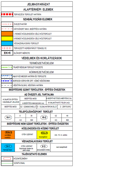 A szabályozási tervek egyes jeleinek értelmezése /rajzi mellékletnek megfelelően/