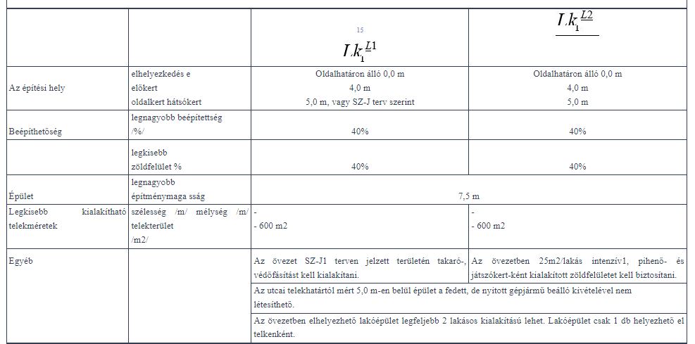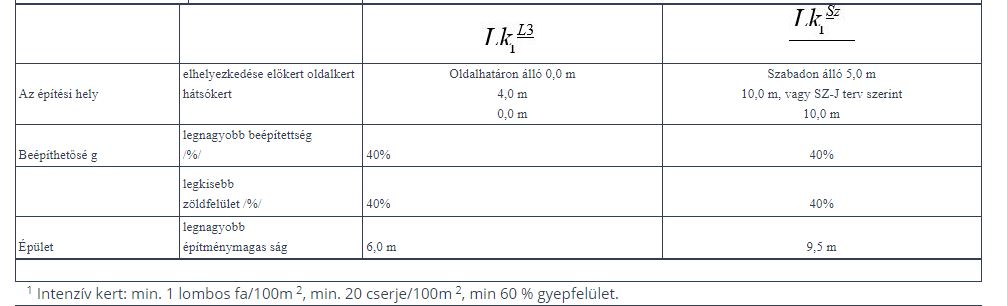 11. § A rendelet 6. mellékletében az Lk1 jelű övezetre vonatkozó előírásokat tartalmazó táblázat helyébe a következő táblázatok lépnek:
