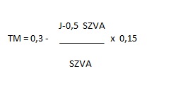 , ahol a J a jogosult háztartásában egy fogyasztási egységre jutó havi jövedelmet, a SZVA pedig a szociális vetítési alap összegét jelöli. A TM-et századra kerekítve kell meghatározni.