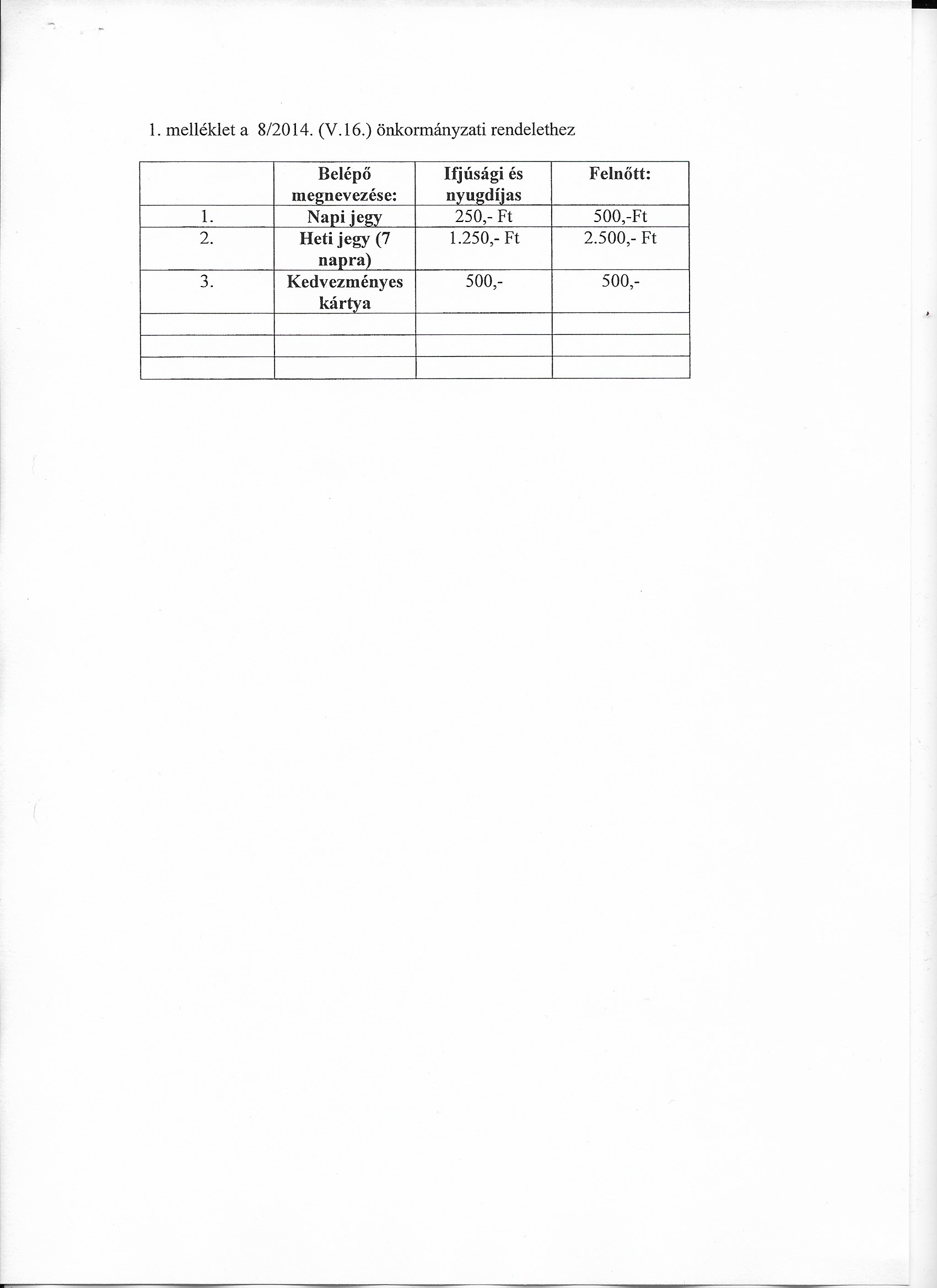 (8) A belépőjegy, bérlet árát jelen rendelet 1. melléklete állapítja meg.