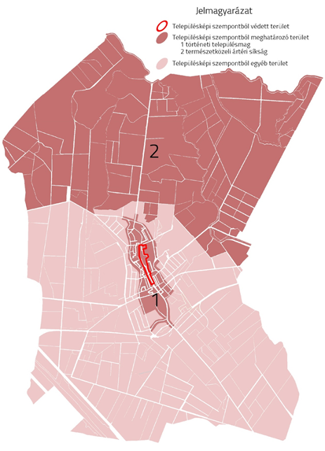 2. Helyi védett érték: Településszerkezet, településkarakter szempontjából jelentős helyi védett településszerkezet, helyi védett utcakép és helyi egyedi védett építmény összessége.