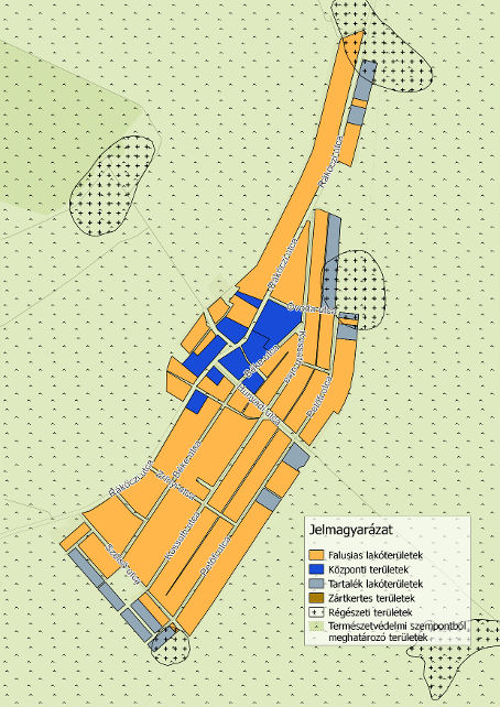 A településszerkezet, településkarakter, tájképi elem és egyéb helyi adottság alapján a településképi szempontból meghatározó területek az 1. mellékletben lehatárolt