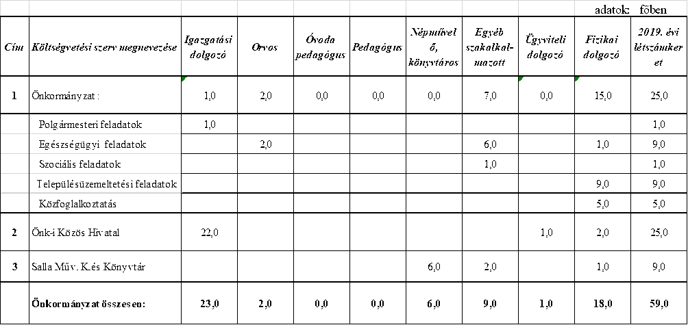 „A képviselőtestület a 2019. évi költségvetési létszám-előirányzatot átlag 59 főben állapítja meg.