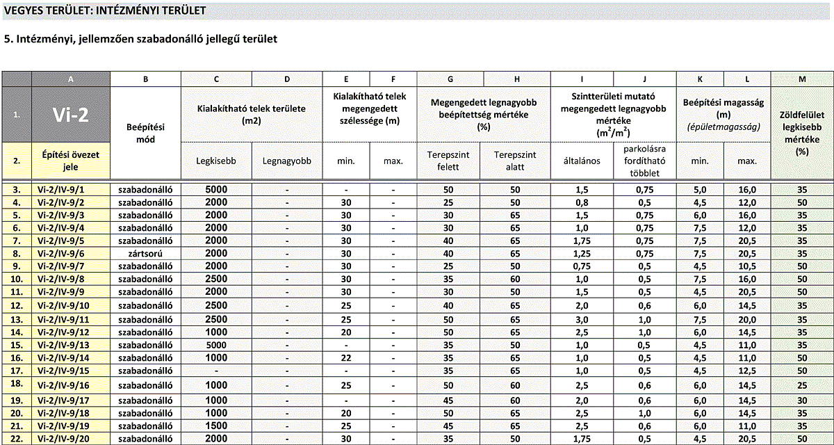 (6)5 A Vi-2/IV-9/1, Vi-2/IV-9/2, Vi-2/IV-9/3, Vi-2/IV-9/4, Vi-2/IV-9/5, Vi-2/IV-9/6, Vi-2/IV-9/7, Vi-2/IV-9/8, Vi-2/IV-9/9, Vi-2/IV-9/13, Vi-2/IV-9/15, Vi-2/IV-9/16, Vi-2/IV-9/17, Vi-2/IV-9/20, K-Közl/IV-9/1, K-Közl/IV-9/2, K-Rek/IV-9/3 és K-Rek/IV-9/4 jelű építési övezetekben új beépítés és meglévő beépítés bővítése esetén a többlet csapadékvíz csak késleltetett módon kerülhet elvezetésre