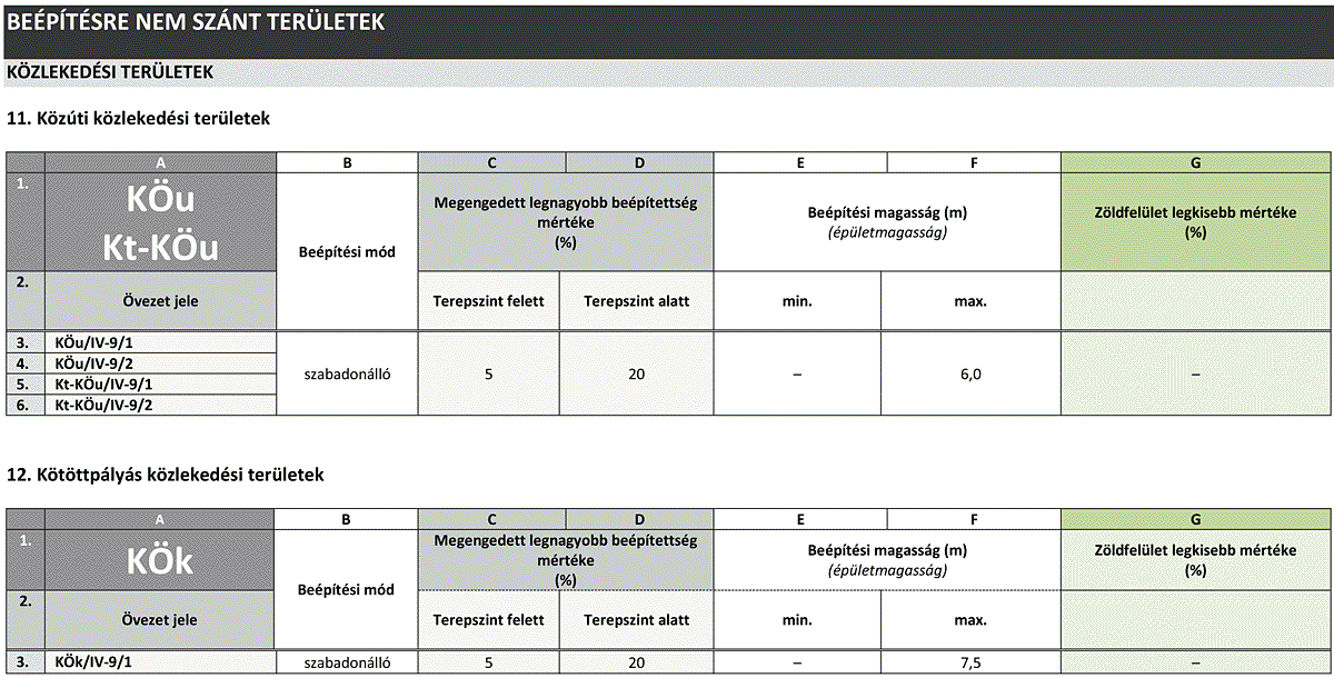 4. Közterületi zöldfelületekre vonatkozó előírások