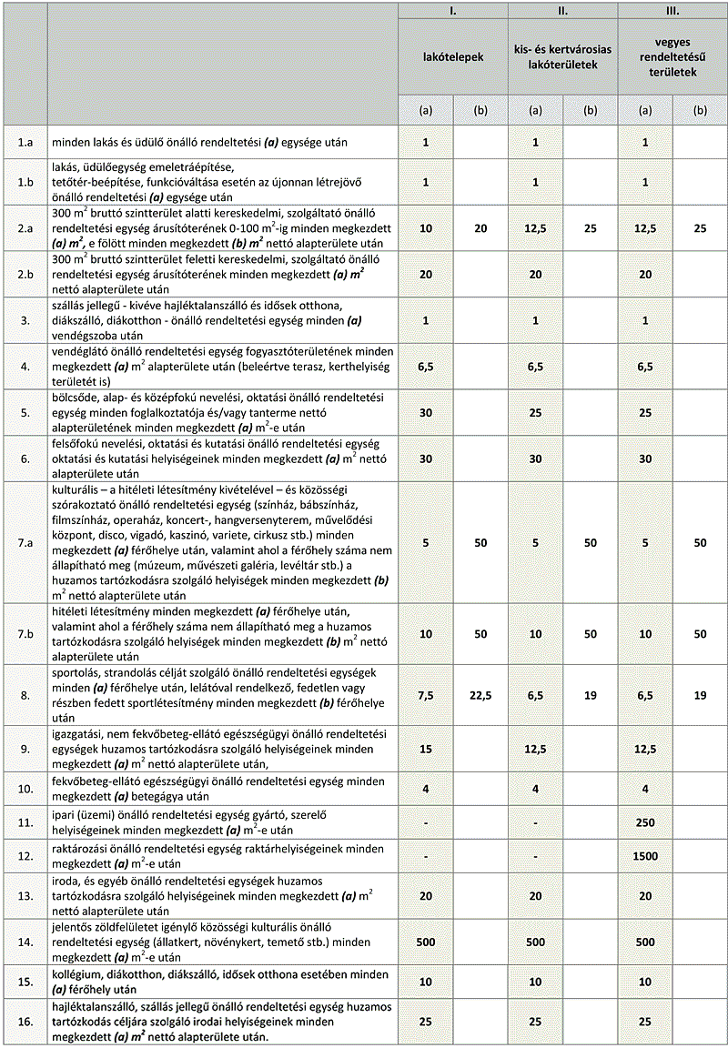 e) 4. melléklet: Az építmények, önálló rendeltetési egységek, területek rendeltetésszerű használatához szükséges, elhelyezendő parkolóhelyek száma;