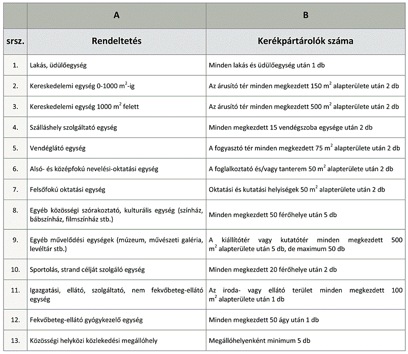 f) 5. melléklet: Az építmények, önálló rendeltetési egységek, területek rendeltetésszerű használatához szükséges, elhelyezendő kerékpártárolók száma;