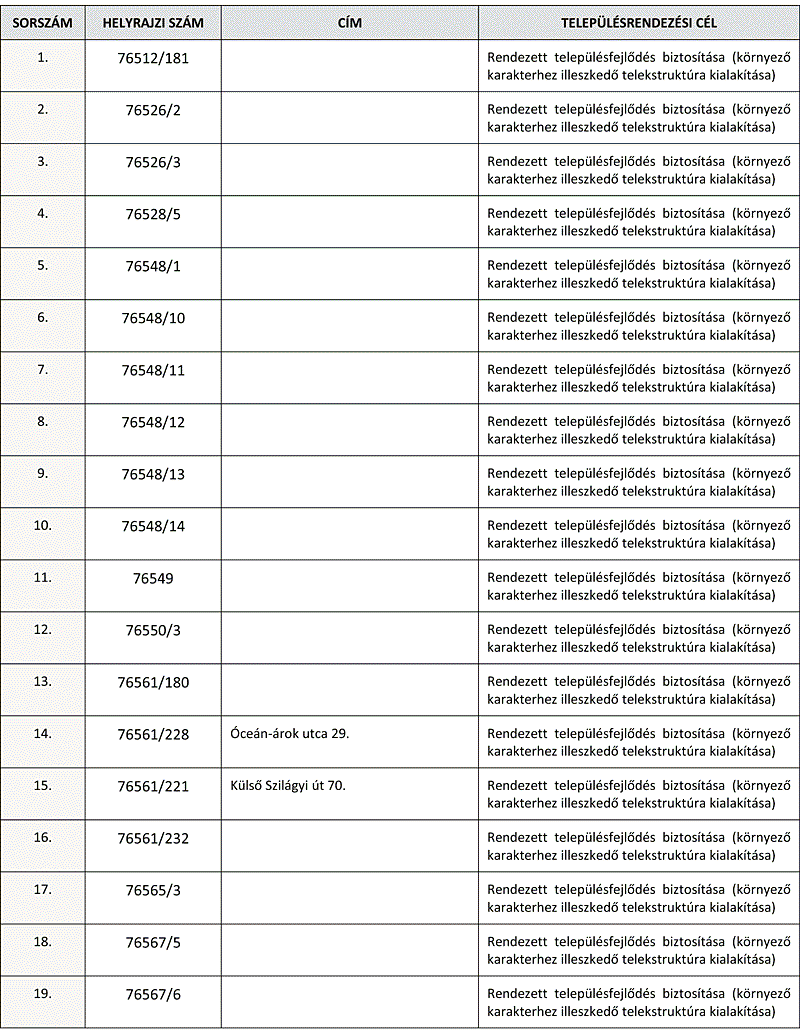 (2) Az (1) bekezdés szerinti településrendezési célokat és azok megvalósításához szükséges ingatlanokat e rendelet 6. számú melléklete tartalmazza.