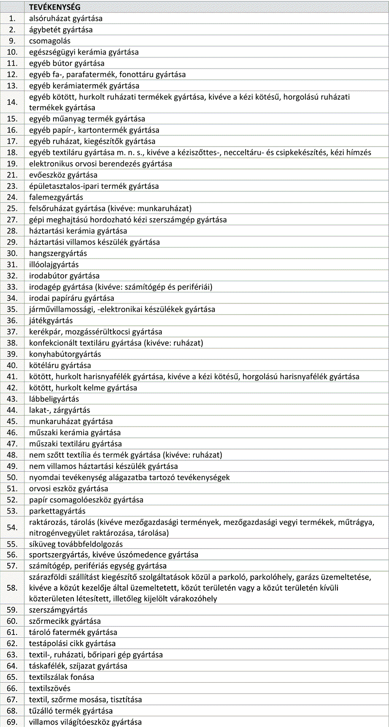 i) 8. melléklet: Műhely-rendeltetés esetén végezhető gazdasági tevékenységek.