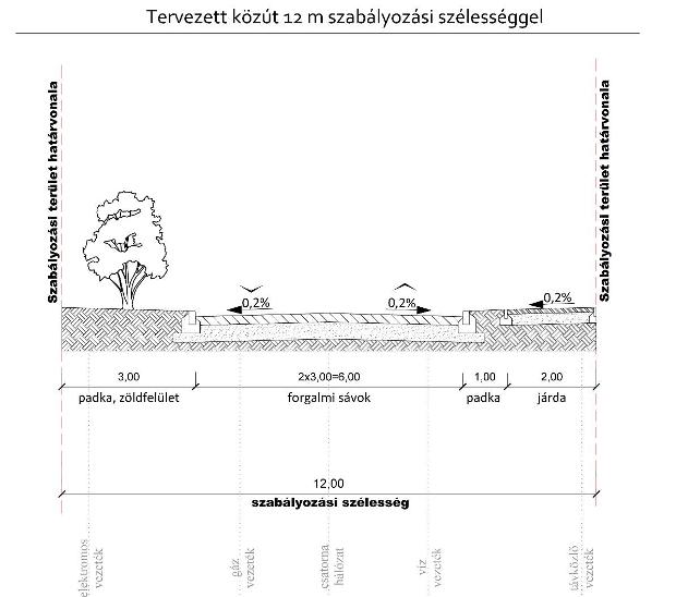 (4) Új közutak, utcák kialakításánál 12 m szabályozási szélességtől legalább egyoldali fasor telepítéséhez területet kell biztosítani.