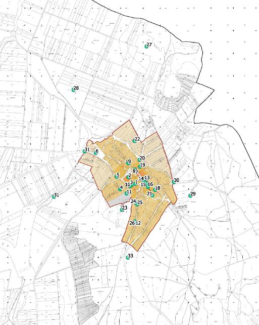 b) 2. melléklet: Településképi szempontból meghatározó területek térképi lehatárolása, valamint a helyi területi védelemmel érintett területek, helyi egyedi védelem alatt álló építmények, alkotások és műtárgyak térképi ábrázolása.
