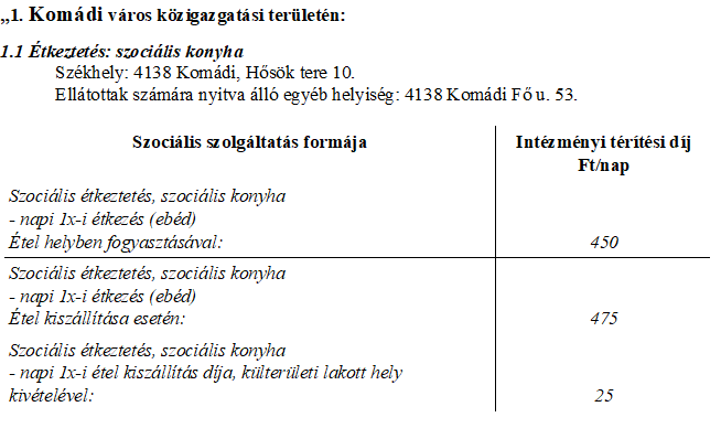 Komádi Városi Önkormányzat Képviselő-testülete a Magyarország helyi önkormányzatairól szóló 2011. évi CLXXXIX. törvény 13. § (1) bekezdés 8. pontjában meghatározott feladatkörében, az 1. § tekintetében a gyermekek védelméről és a gyámügyi igazgatásról szóló 1997. évi XXXI. törvény 131. § (1) bekezdésében kapott felhatalmazás alapján, a 2. § tekintetében a szociális igazgatásról és szociális ellátásokról szóló 1993. évi III. törvény 92. § (2) bekezdés f.) pontjában kapott felhatalmazás alapján Komádi Városi Önkormányzat Képviselő-testülete Szervezeti és Működési Szabályzatáról szóló 4/2014. (IV.14.) önkormányzati rendelet 3. mellékletében biztosított véleményezési jogkörében eljárva, a képviselő-testület valamennyi bizottsága véleményének kikérésével egyes önkormányzati rendeleteknek a térítési díjak módosításával összefüggő módosításáról a következőket rendeli el: