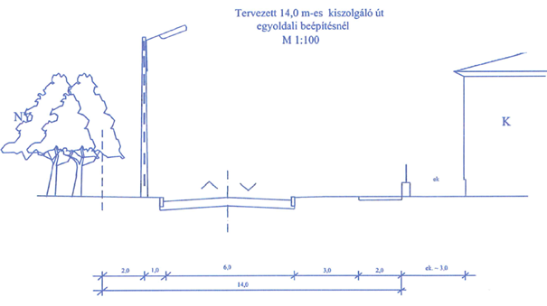 3. Tervezett 14,0 m-es kiszolgáló út egyoldali beépítésnél