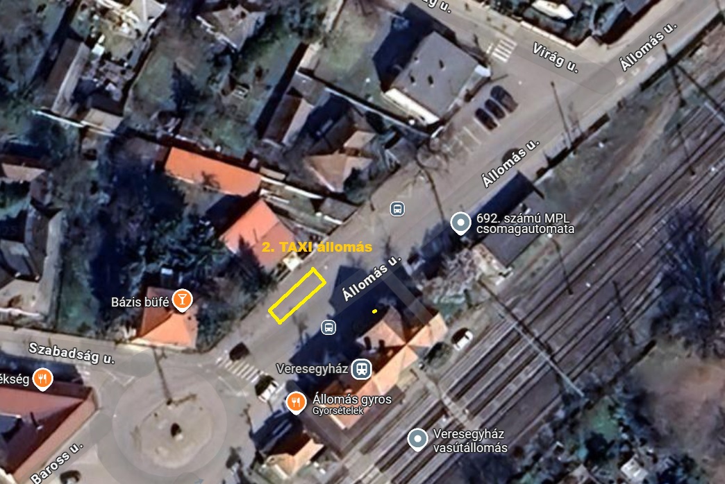 2. Veresegyház, 63/1 hrsz., Állomás utca: 1 db taxiállomás