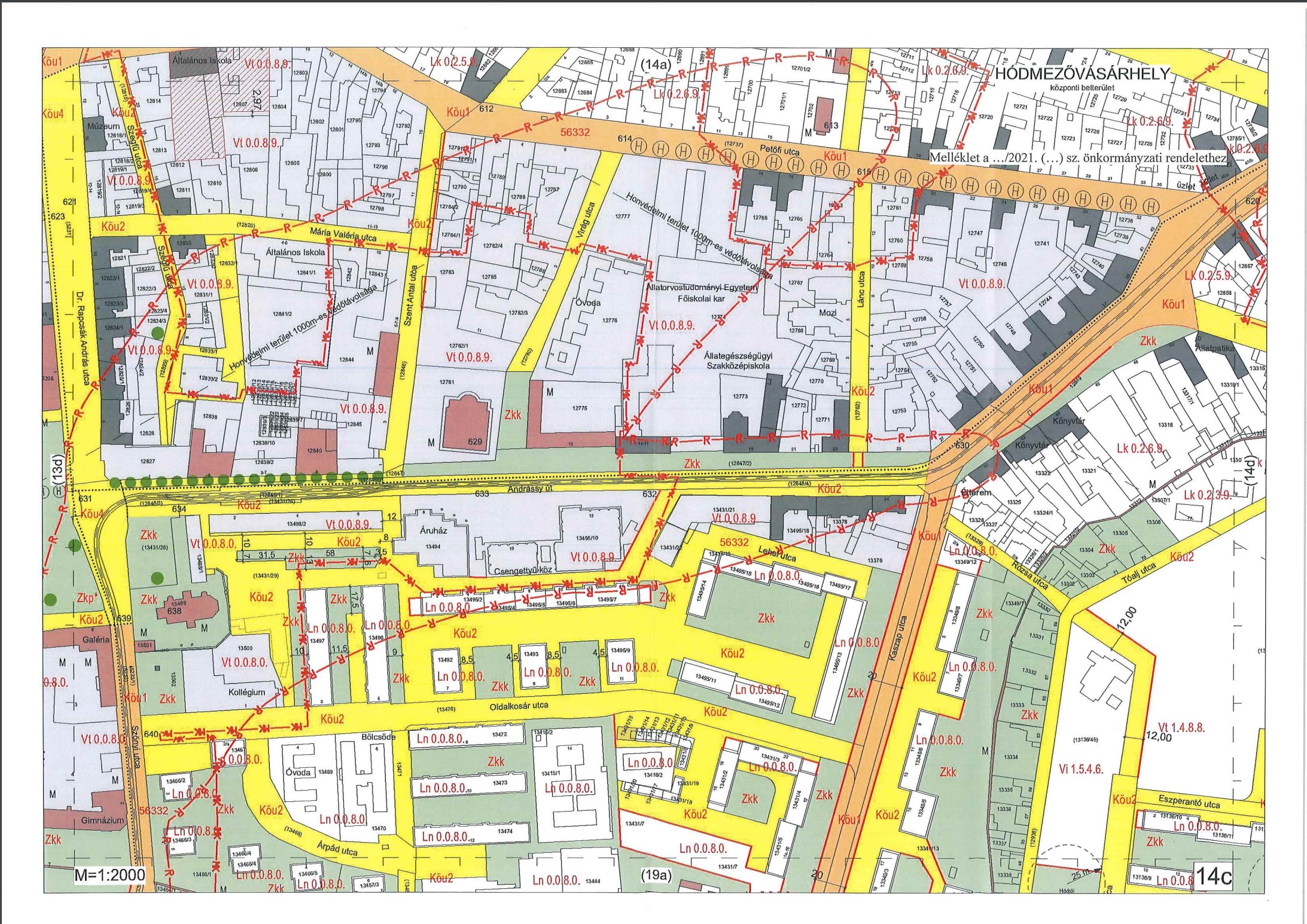 1. § Hódmezővásárhely Megyei Jogú Város Helyi Építési Szabályzatáról szóló 14/2020. (III.20.) önkormányzati rendelet (továbbiakban: HÉSZ) „SZ-2 Belterületi és zártkerti szabályozási terv” megnevezésű 1.2. mellékletének 14C számú szabályozási tervlapja helyébe a jelen rendelet mellékletét képező 14C számú tervlap lép.