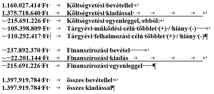 „(1) A Képviselő-testület az Önkormányzat 2022. évi költségvetését: állapítja meg.”