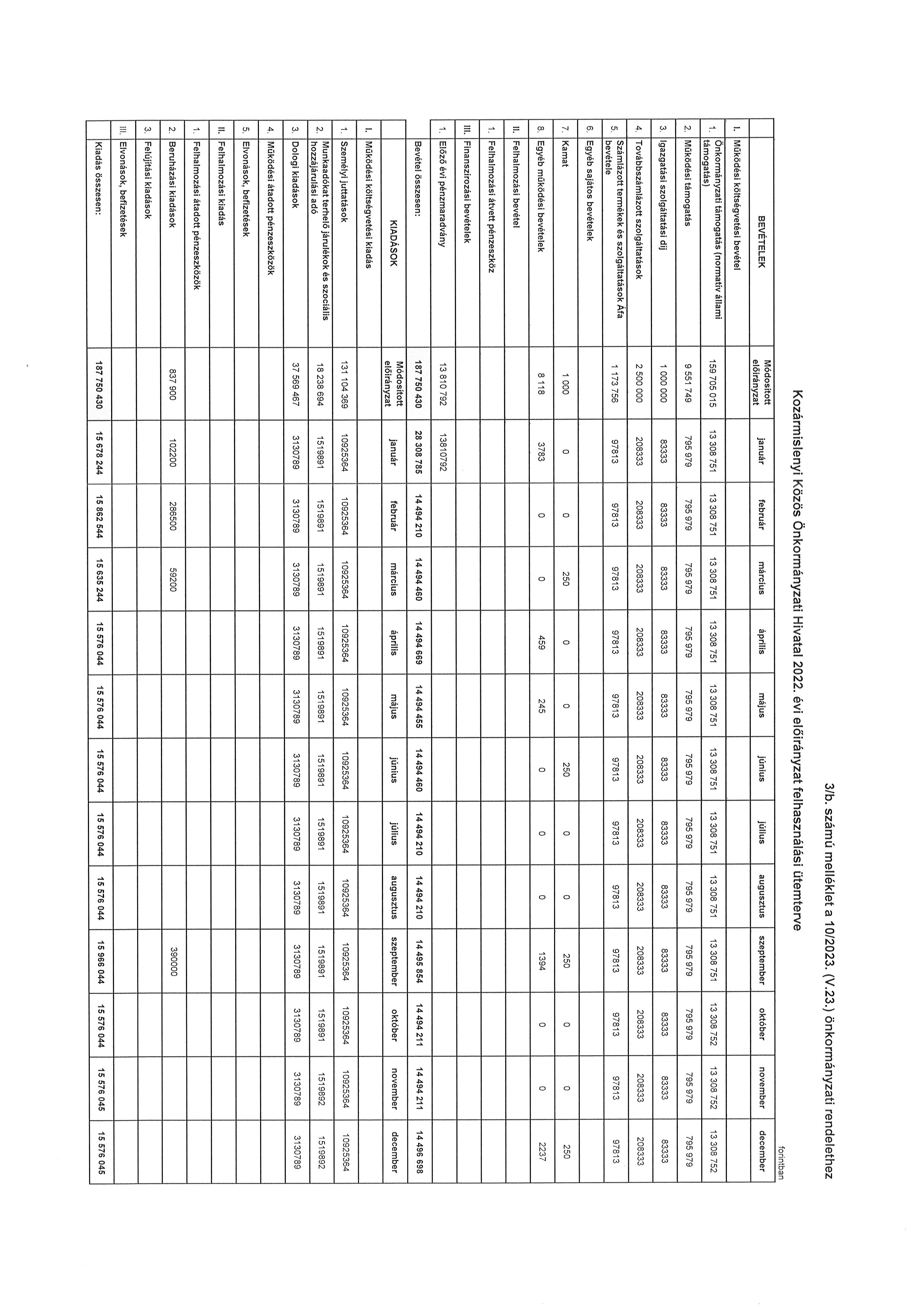 ”10. melléklet a 10/2023. (V. 23.) önkormányzati rendelethez