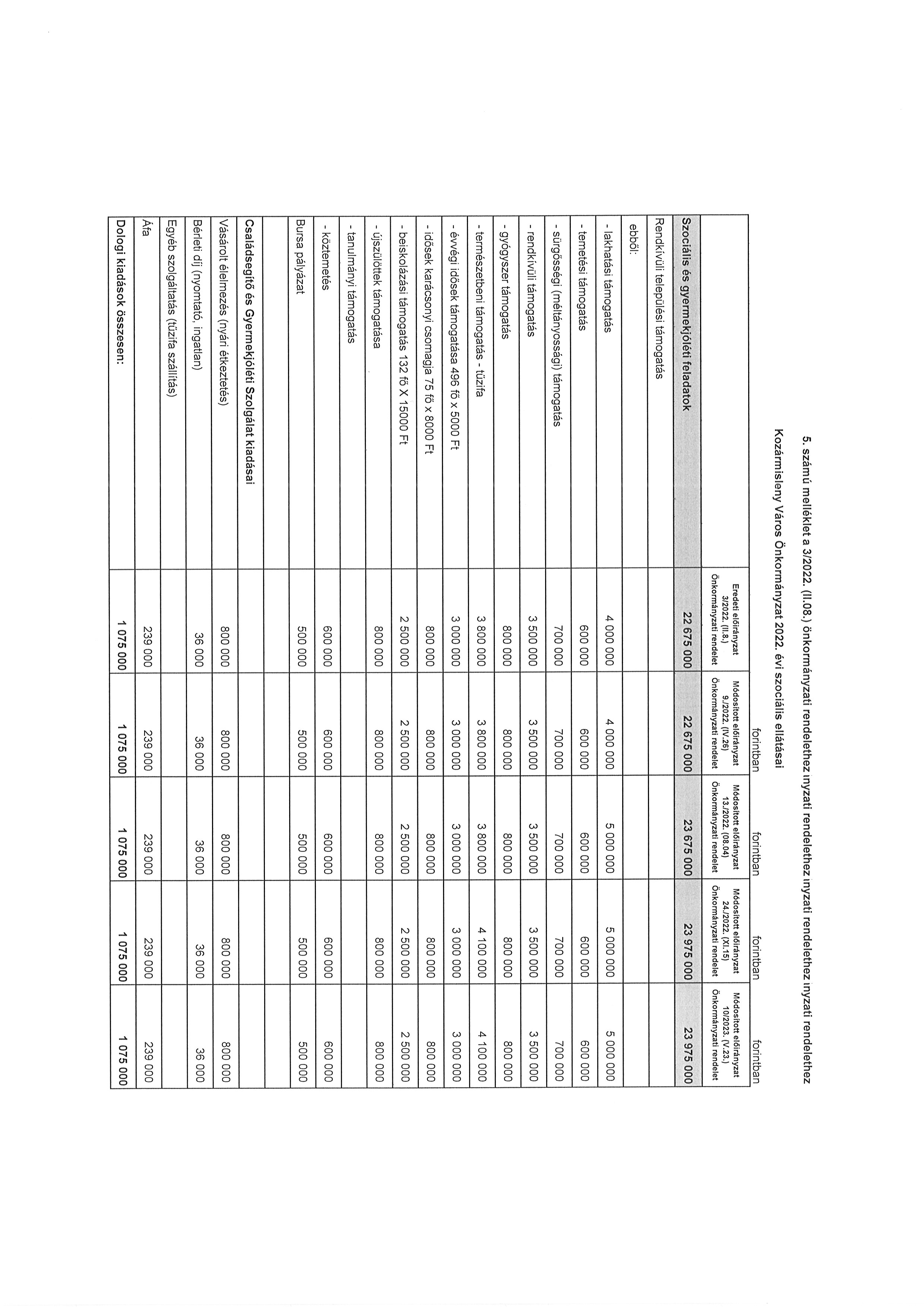 ”5. melléklet a 10/2023. (V. 23.) önkormányzati rendelethez