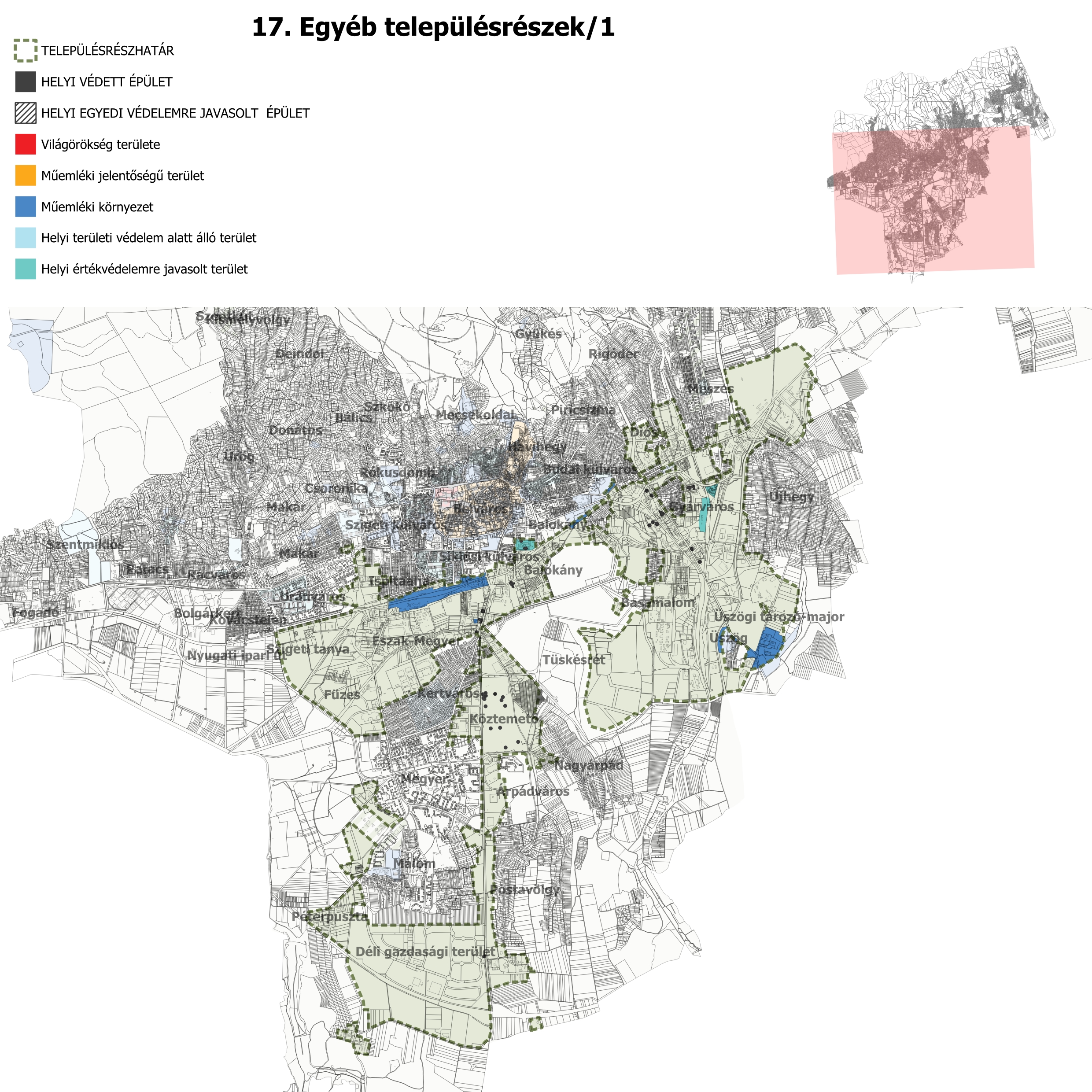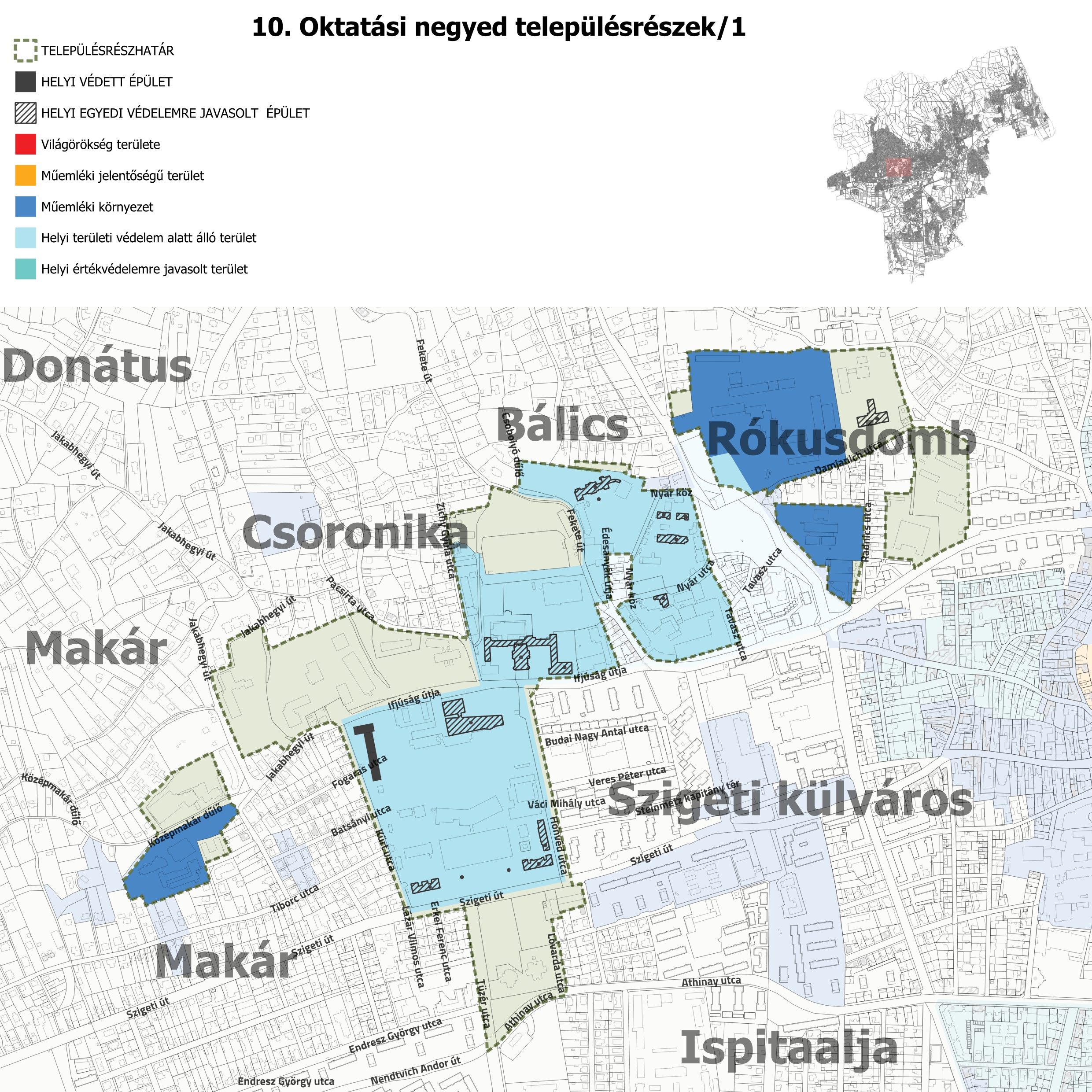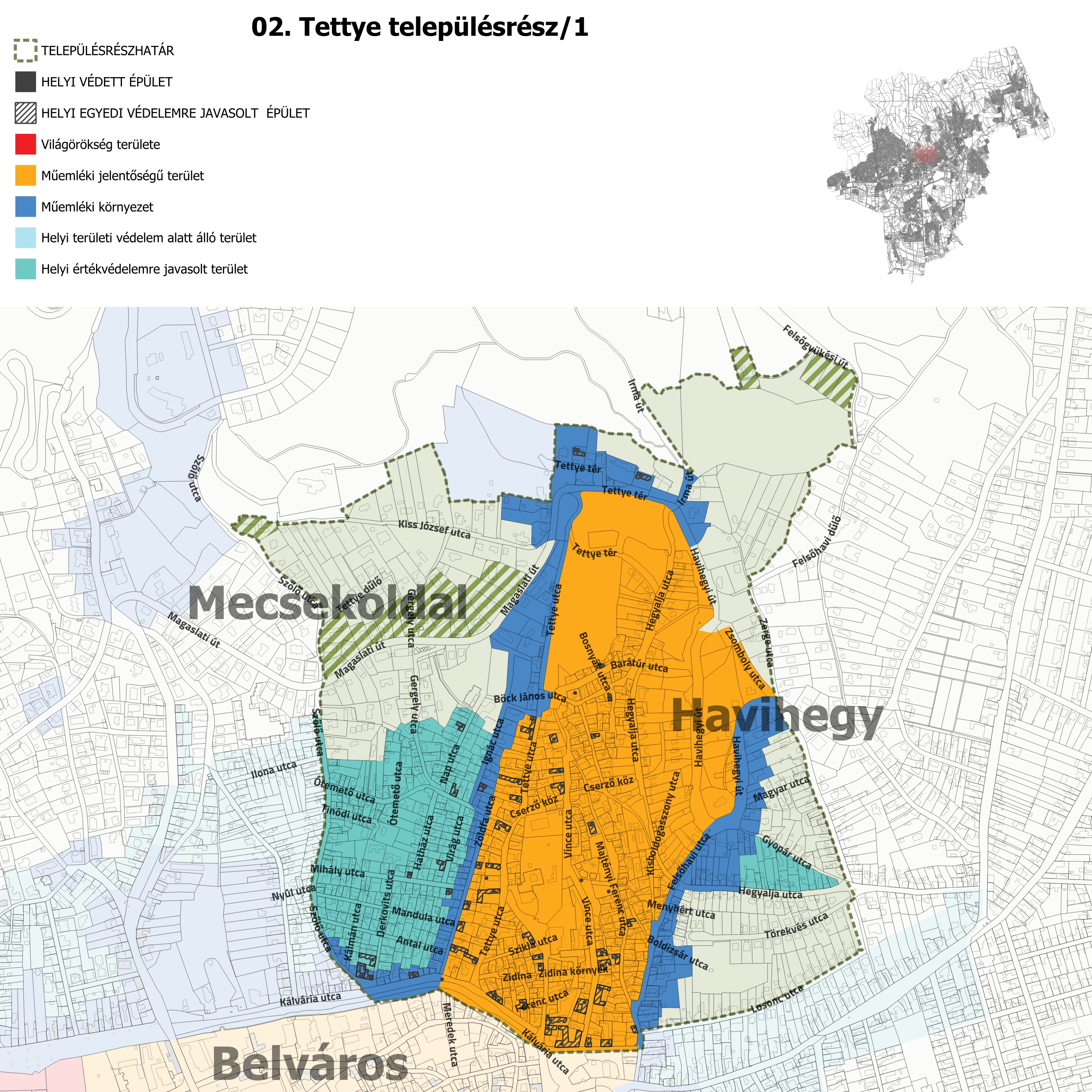 ac) a védendő érték pontos helyének (egyedi védelem esetén: utca, házszám, helyrajzi szám, épületrész, területi védelem esetén: terület, utcák, tömbök) megjelölését, ábrázolását helyszínrajzon,