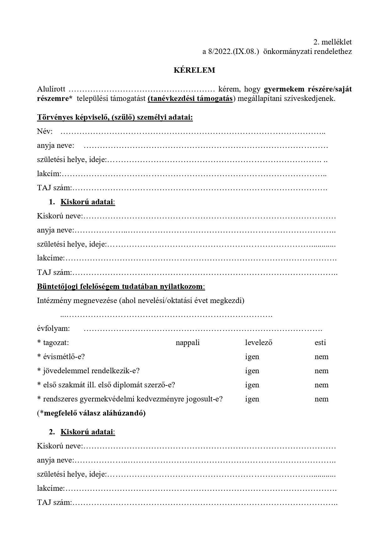 1. § (1) A szociális ellátásokról szóló 8/2022. (IX. 8.) önkormányzati rendelet 9. § (3) bekezdése helyébe a következő rendelkezés lép: