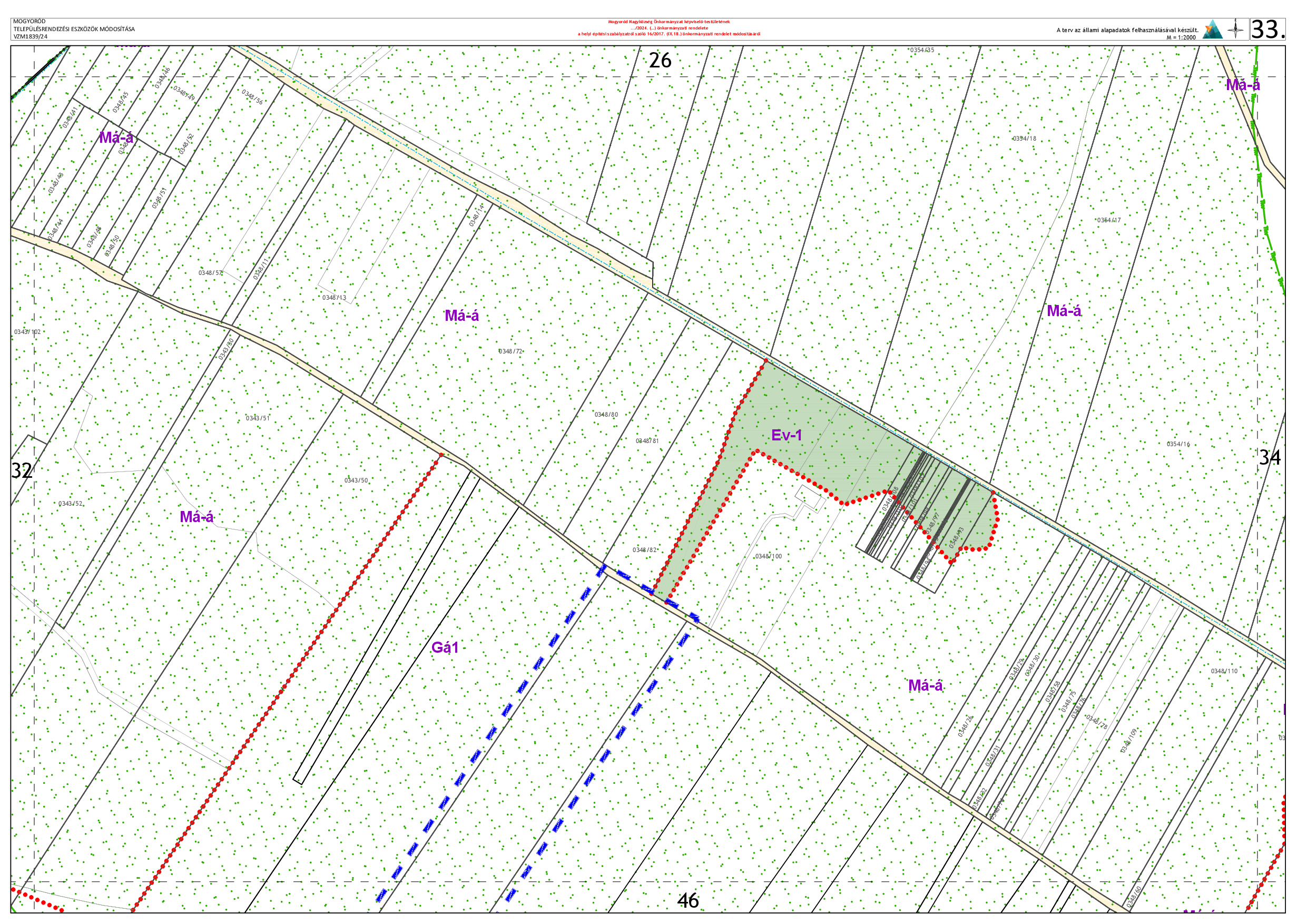 1. A Mogyoród Nagyközség Helyi Építési Szabályzatáról szóló Mogyoród Nagyközség Önkormányzat Képviselő-testületének 16/2017(IX.18.) számú önkormányzati rendelete 2. melléklet 33. pontja helyébe a következő pont lép: