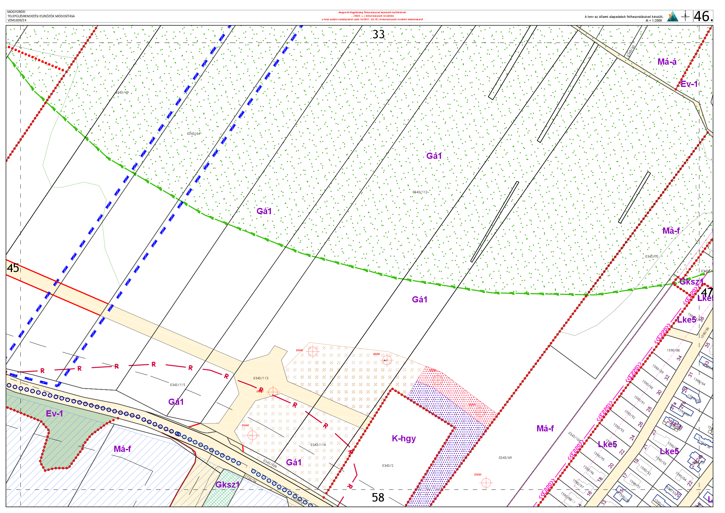 2. A Mogyoród Nagyközség Helyi Építési Szabályzatáról szóló Mogyoród Nagyközség Önkormányzat Képviselő-testületének 16/2017(IX.18.) számú önkormányzati rendelete 2. melléklet 45. és 46. pontja helyébe a következő pontok lépnek: