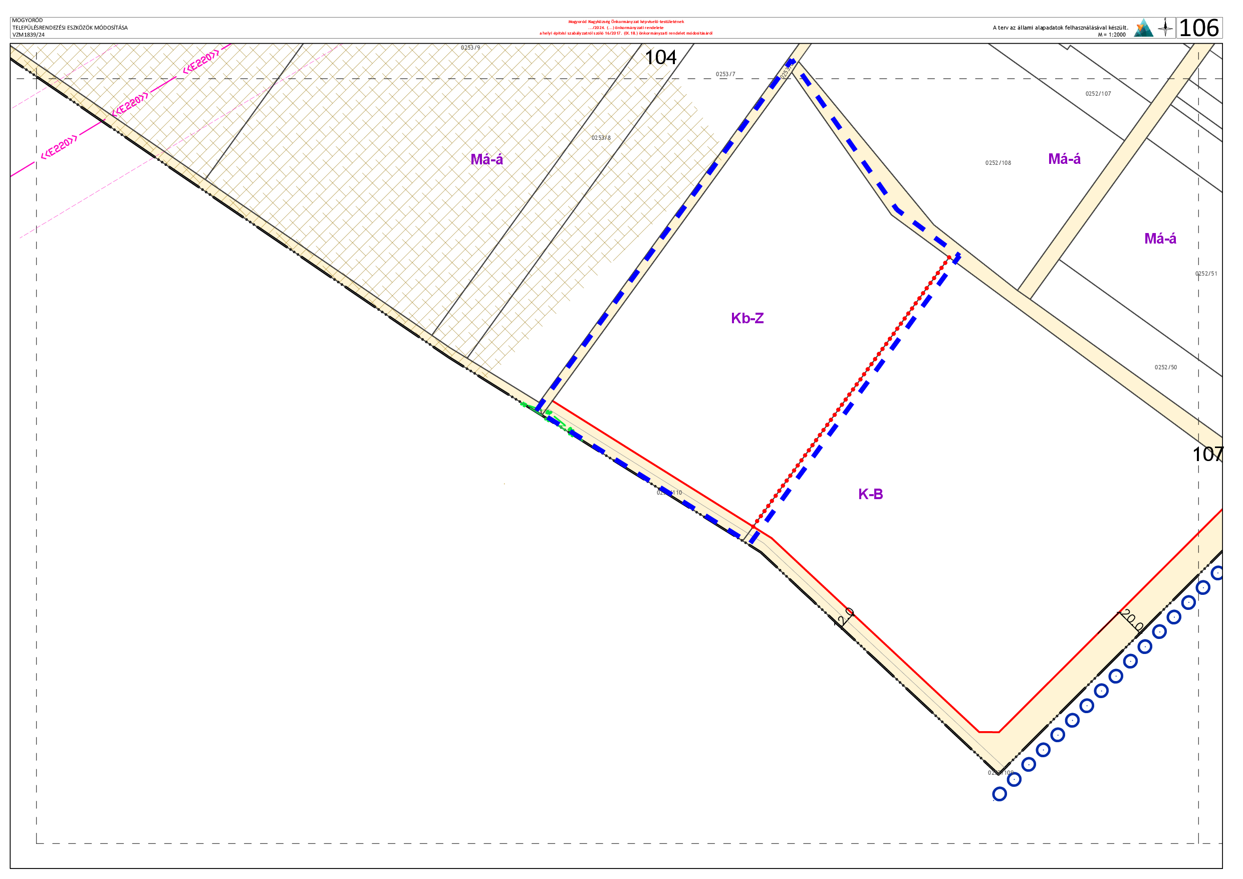 3. A Mogyoród Nagyközség Helyi Építési Szabályzatáról szóló Mogyoród Nagyközség Önkormányzat Képviselő-testületének 16/2017(IX.18.) számú önkormányzati rendelete 2. melléklet 106. pontja helyébe a következő pont lép: