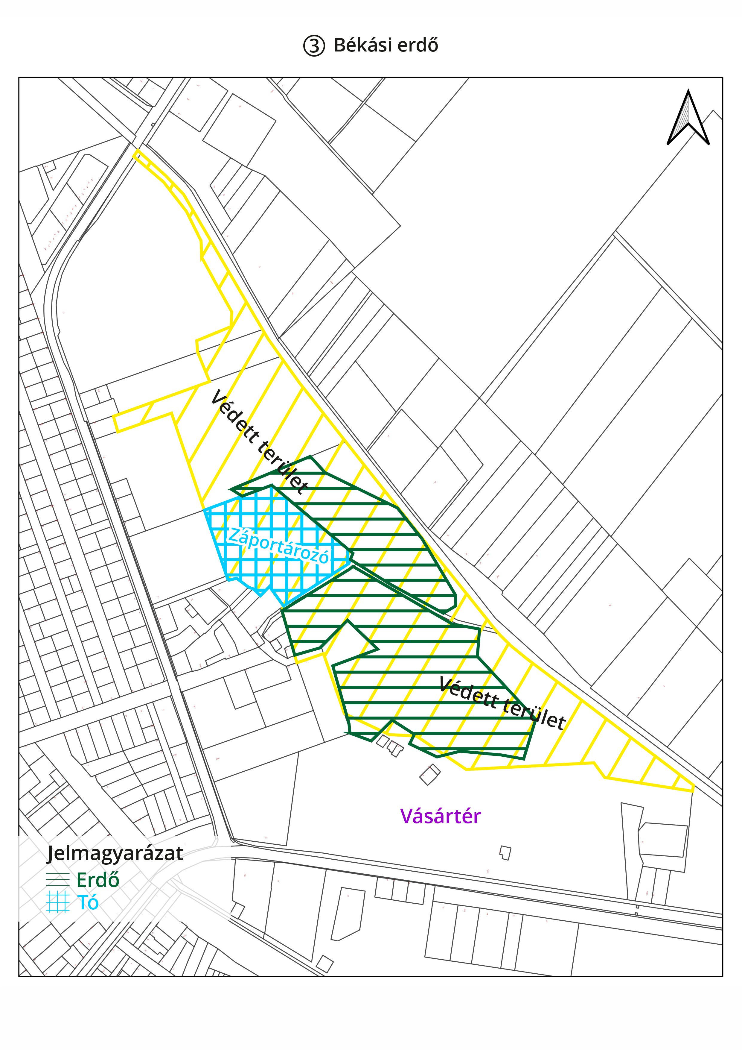 kivett vásártér, erdő, kivett csatorna, legelő |