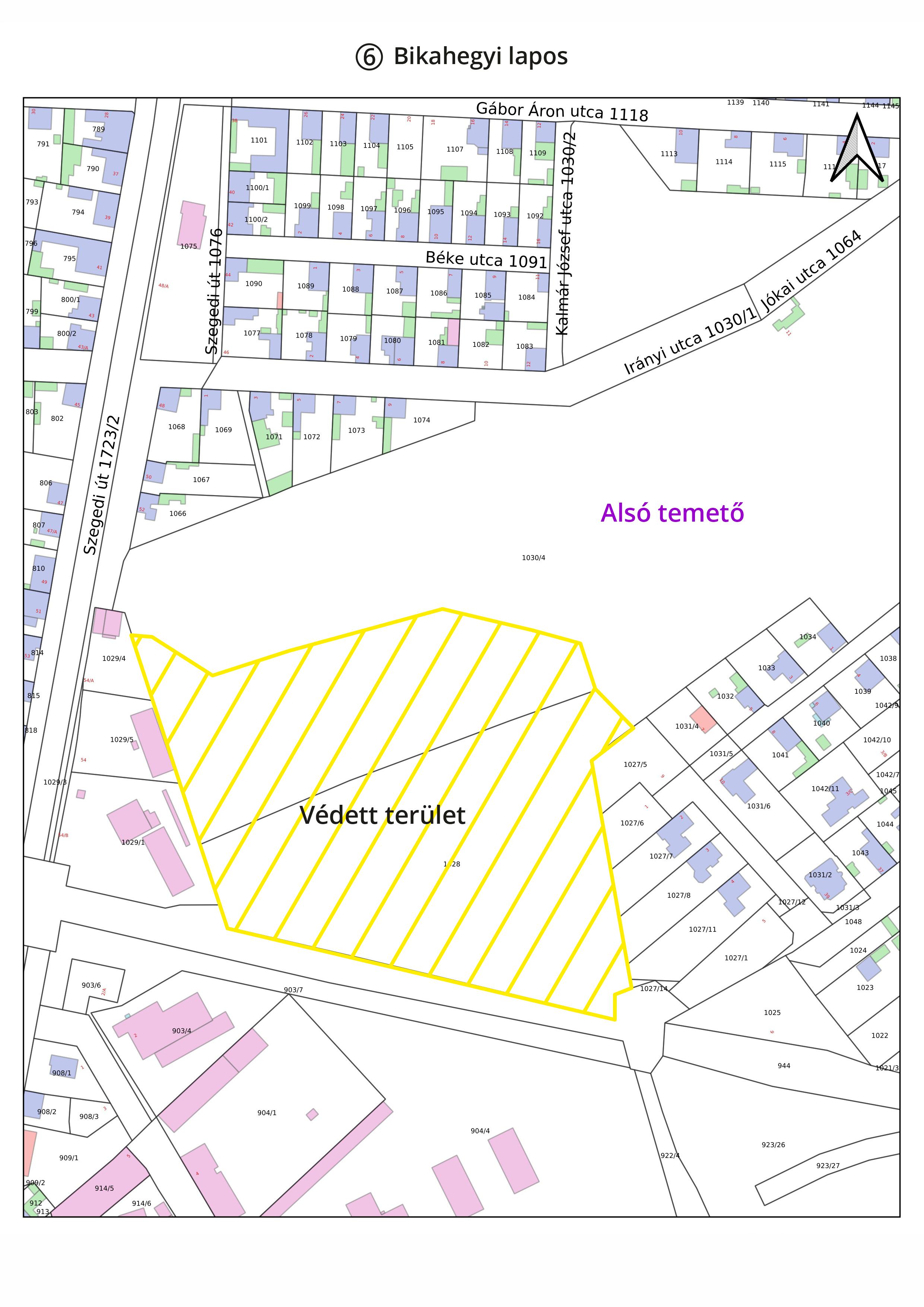 7. § (1)4 A Bikahegyi lapos legfontosabb természeti értéke, hogy egy, a településfejlődés során – az 5-ös főút, a vasút, valamint az Alsó temető közé ékelődve – lefolyástalan zárvánnyá vált területen a természet gyógyító munkája során megindult szukcesszió egymást követő folyamatai mennek végbe. A terület átkötő elem a temető zöldfelülete és a vasúton túli mintegy 15 hektár nagyságú városi parkerdő növényállománya között, ezáltal meghatározó eleme a városkörüli természetközeli zöld infrastruktúra hálózatnak.