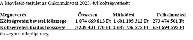 (2) Az (1) bekezdésben foglaltak alapján a képviselő-testület az Önkormányzat 2023. évi
