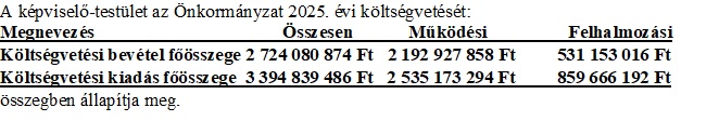 (2) Az (1) bekezdésben foglaltak alapján a képviselő-testület az Önkormányzat 2025. évi