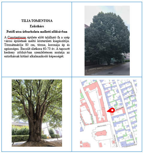 Petőfi utca 2. szám előtt az útburkolat melletti zöldsávban ezüsthárs |