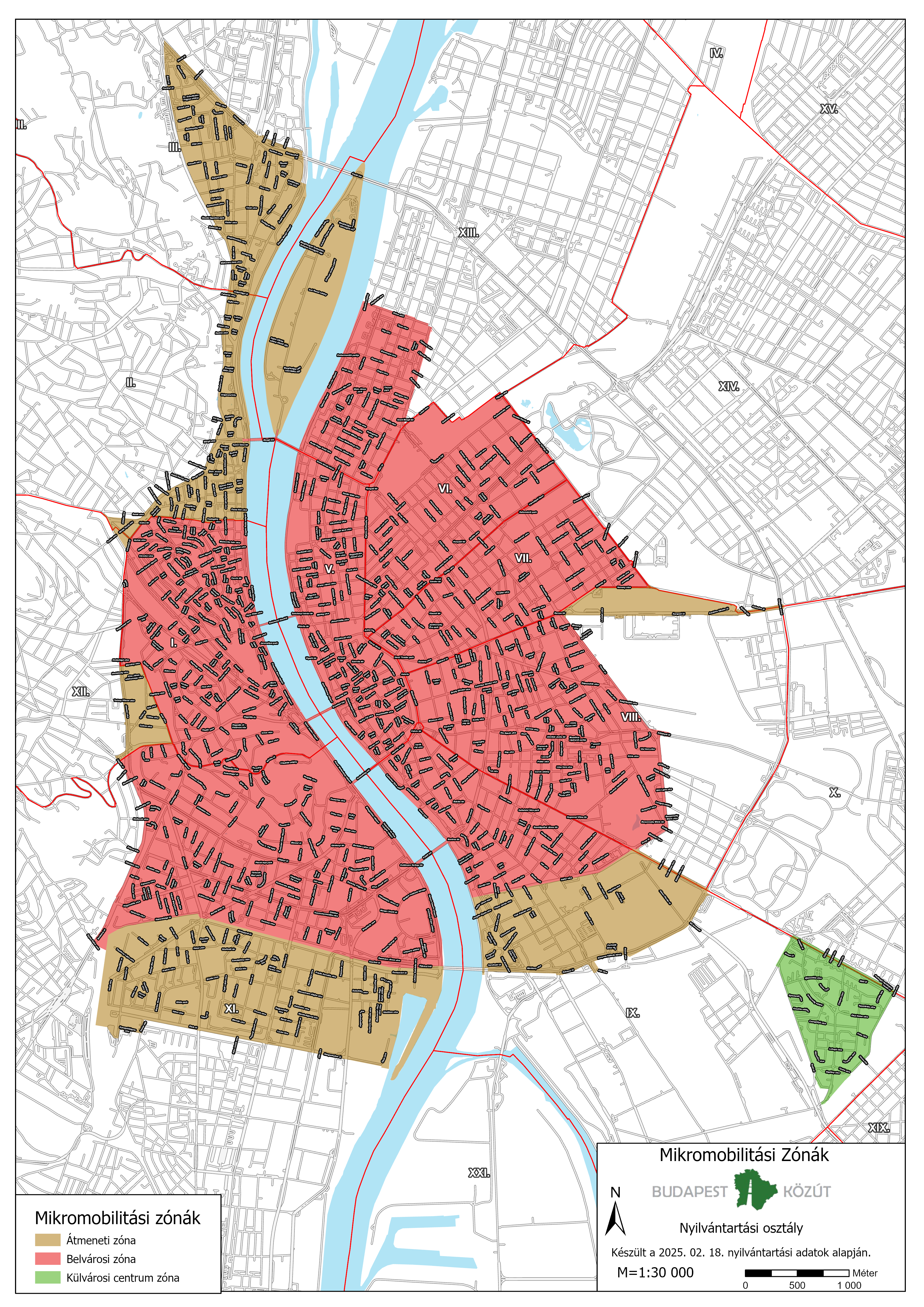 „1. A Budapest területén található belvárosi, átmeneti és külvárosi centrum zónák [33/G. § (4) bekezdés a)–c) pont]: