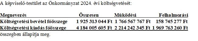 (2) Az (1) bekezdésben foglaltak alapján a képviselő-testület az Önkormányzat 2024. évi