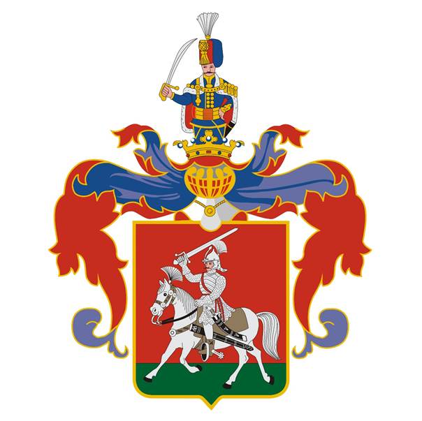 1. § (1) Veszprém város címere: vörös mezőben, zöld talajon ügető, lovon ülő, kócsagtollas, páncélos vitéz, jobbjában kivont egyenes kardot tart. A pajzson takarókkal, s arany koronával ellátott sisak van, amelynek koronájából magyar huszár emelkedik ki, kék dolmányban, panyókára vetett kék mentével, prémes, forgós, s kék leffentyűs kucsmával, jobbjában kivont görbe kardot tartva. A sisaktartók mindkét felől vörös-kék színűek.